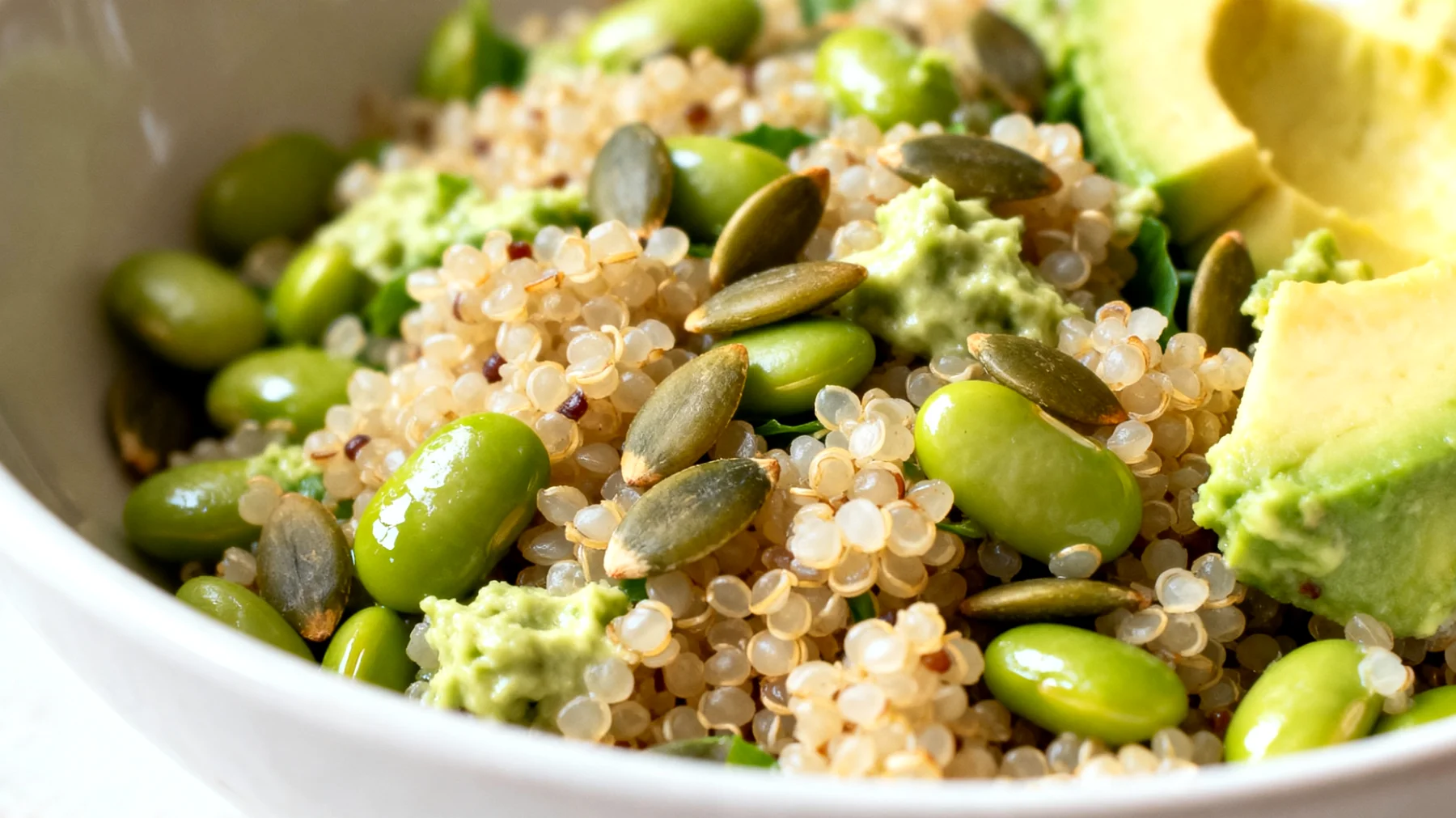 Dietro l’apparente semplicità di questo piatto si nasconde un’architettura nutrizionale sofisticata. La quinoa, pseudocereale originario delle Ande, fornisce tutti e nove gli aminoacidi essenziali, caratteristica rara nel regno vegetale. Gli edamame, i giovani fagioli di soia verdi, completano lo spettro proteico offrendo proteine vegetali di alta qualità : una quantità che soddisfa le necessità di sintesi muscolare post-allenamento senza richiedere la digestione laboriosa delle carni rosse.
